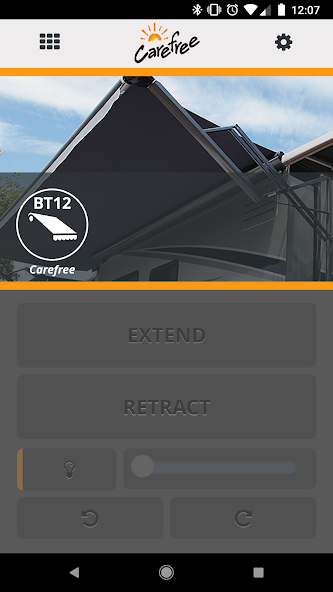 Carefree Connects Mobile App позволяет вам быстро и легко расширять, отозвать и останавливать свой тент в режиме реального времени. Есть также кнопки, чтобы слегка отрегулировать тент или на улице, чтобы идеально ориентироваться