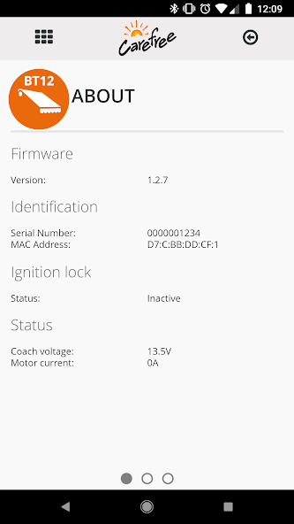 Когда датчик движения BT включен и активен, приложение обнаружит датчик движения и отобразит детали подключенного модуля в таблице в настройках Carefree Connects мобильное приложение. Если по какой -либо причине ваш датчик потерян или батарея мертва, приложение отправит уведомление о том, что датчик движения не найден или не подключен.